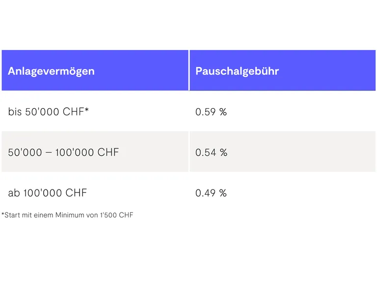 Unsere Pauschalgebühr: 0.49 – 0.59 % pro Jahr
