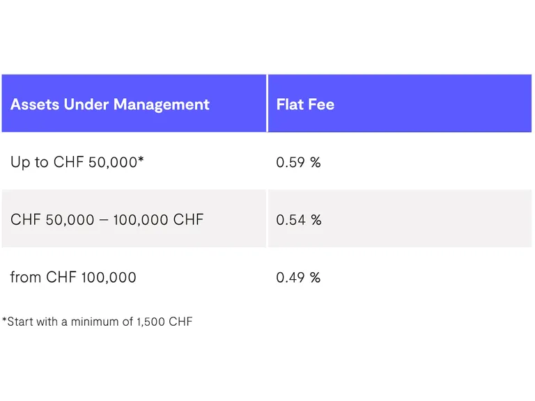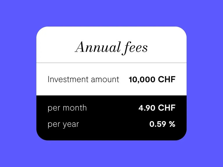 Your money is held with our partner, Hypothekarbank Lenzburg AG – regulated by the Swiss Financial Market Supervisory Authority (FINMA). All your assets are safely stored in your personal custody account. Account and custody management are fully covered by the flat fee. With , these fees often amount to several hundred francs per year, even for small portfolios.